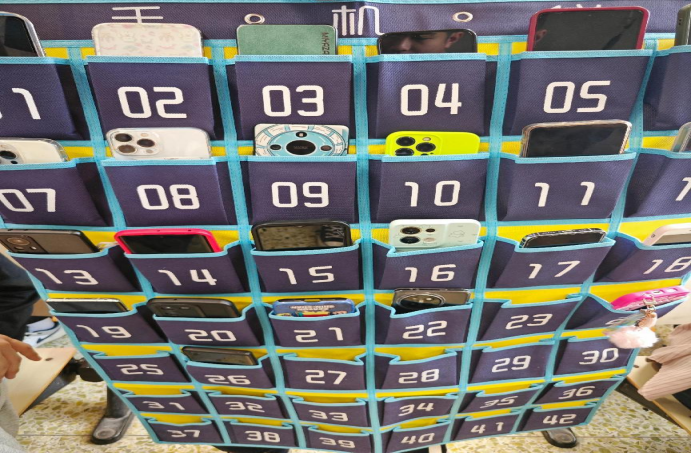 本次活动中,两个班级均采取借助手机收纳袋在课前收集同学们的手机,并在课后进行发放的方式进行。根据班级人数,严格把控手机数量。活动初期,部分同学对无手机课堂存在一定抵触情绪,但经过班委的耐心解释,同学们逐渐理解了活动意义。