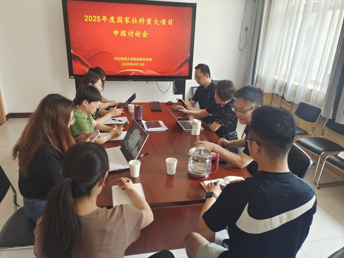 2025年6月13日下午,tyc8722太阳集团召开了2025年度国家社科重大项目申报讨论会。会议由学院院长王晓洁主持,特邀专家河北省财政厅研究员王相启、副院长仇晓洁以及学院多位青年博士教师共同参加了研讨。