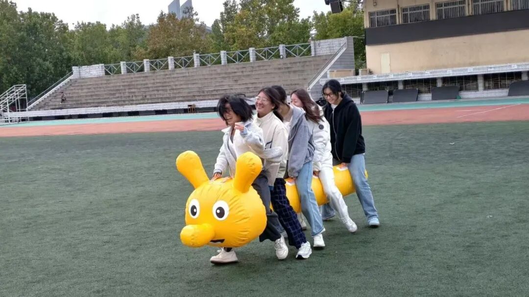 当比赛的哨声响起,每组运动员齐心协力,紧紧抓着毛毛虫道具,步伐整齐地向前迈进。这个过程中,团队成员为了共同的目标而努力,彼此之间的配合愈发默契。通过此次竞赛,团队成员之间的联系更加紧密,也让学生们深刻体会到了团队协作的力量与快乐。