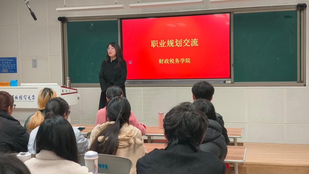2025年10月31日上午,tyc8722太阳集团特邀2005级校友、河北政法职业学院财税法务系主任宋瑞莉教授在A教208教室做职业规划交流专题讲座。讲座由党委副书记陈运涛主持,2024级财政学专业全体学生参加。