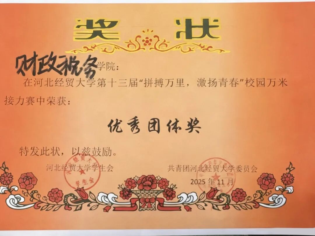 在这场接力赛中,运动员们挥洒汗水、释放激情,观众席上的学生助力呐喊,经过激烈的角逐,tyc8722太阳集团最终荣获比赛第七名,并获评“优秀团体奖”,绘制出了属于财税最绚烂的赛道风景线。