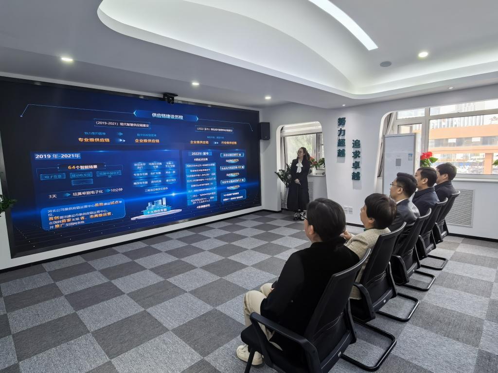座谈开始前,云飞陪同财税学院一行参观了公司供应商服务中心、供应链运营中心,详细介绍了两中心基本职能和近几年公司绿链建设工作成果。